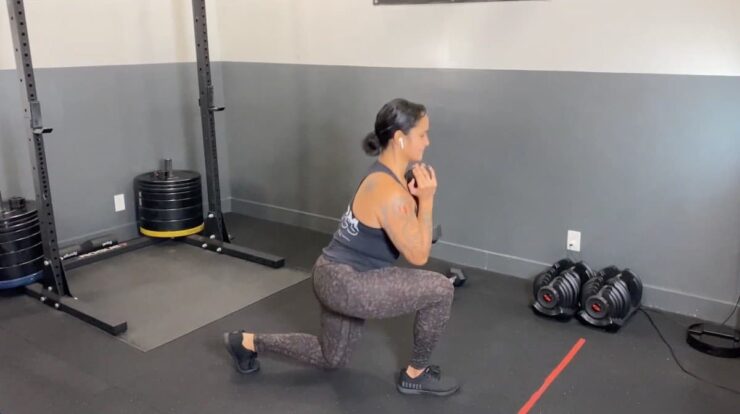 Switching from a two-leg squat to a single-leg exercise makes it more challenging to your legs and core. Holding the weight in the goblet position and performing a reverse lunge, or back lunge, can be one of the best ways to get started with this movement.